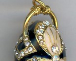 Russische Kunst Ei Anhanger M / Klare Kristalle, Gold Wirbel, Rot Und Gold Band