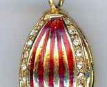 Russische Faberge Kunst Ei Anhanger Von Rot,Grün Und Gold Wirbel W / Klar Strass