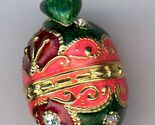 Russische Faberge Kunst Ei Anhanger Von Rot,Grün Und Gold Wirbel W / Klar Strass