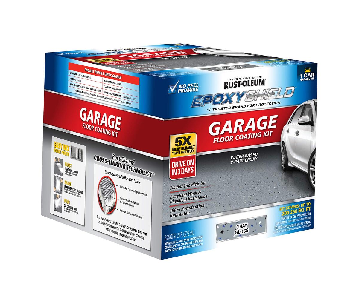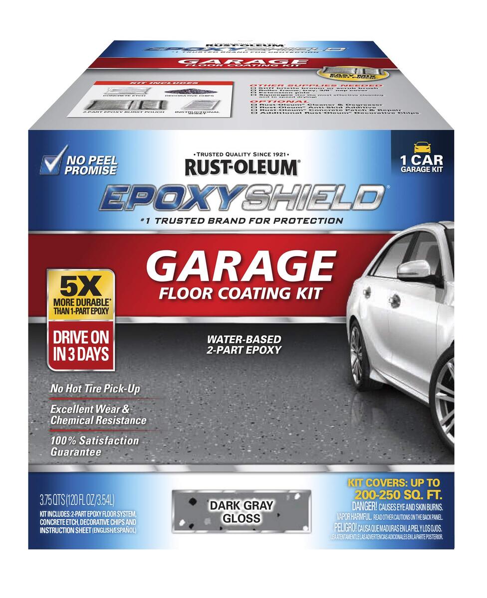 - Rust-Oleum 292514 EPOXYSHIELD Premium Clear Garage Floor Coating Kit, 2.5 Car, G