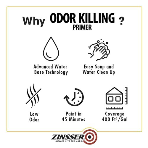 - Rust-Oleum Zinsser 307648 Odor Killing Primer, White, Quart