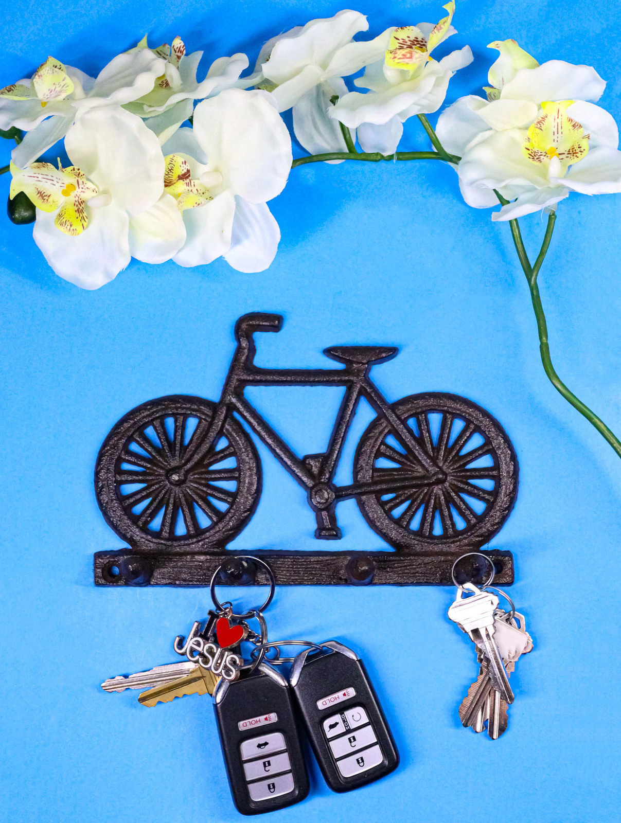 ? Celebrate your love for cycling with this Rustic Cast Iron Bicycle Wall Hook. Featuring a charming vintage-style bicycle design, this durable piece comes with four sturdy pegs for hanging coats, hats, keys, or accessories. Its rustic finish adds old-fashioned character, making it a functional and decorative accent for entryways, mudrooms, or any space with a sporty, whimsical touch.