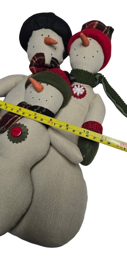 Add a charming touch to your holiday decor with this vintage handmade Snowmen Family Cotton Muslin Stuffed Farmhouse Decor. Measuring 17? x 11?, this delightful piece is perfect for celebrating Christmas and the winter season. Featuring a timeless design crafted from soft, durable cotton muslin, this snowmen family adds a cozy, nostalgic feel to your home. Ideal for mantel displays, tabletops, or as a thoughtful gift for vintage holiday decor enthusiasts. Bring warmth and whimsy to your winter