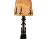Hand-Painted Wood Chip Shade: Featuring a unique wood chip shade adorned with intricate pine tree designs, it perfectly captures the essence of lodge living.