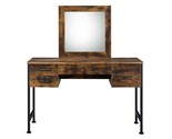 Rustic wood frame with metal accents celebrates the beauty of raw materials for a true industrial feel. Straight lined-metal border with dark finish highlights the elaborate silhouette of the desk. Vanity mirror attached to the tabletop will ease your beauty routine, while four storage drawers in different sizes help you organize all your makeup.