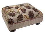 Measures 18"W x 14"D x 9"H./ Primary colors are shades of gray, chocolate brown,/ mocha, butterscotch, tan, and sage./ Hand hooked from 100% New Zealand wool./ Rests on 3" hardwood bun feet
