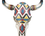 ? Bring bold desert vibes to your space with the Colorful Aztec Cow Skull Sculpture. Featuring a detailed cow skull design accented with vibrant Aztec-inspired patterns and tribal vector symbols, this striking piece captures the spirit of the Southwest with rustic charm and cultural flair. Perfect for wall displays, shelves, or as a centerpiece, it adds a unique and artistic touch to any Western, boho, or eclectic decor. A must-have for those who love Native-inspired art.