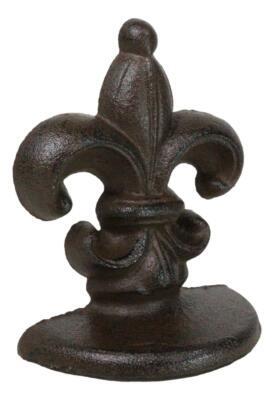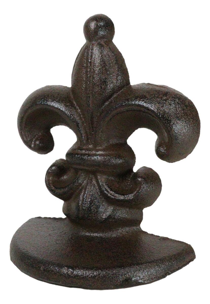 ? This Fleur De Lis Doorstop Sculpture is made of cast iron, hand painted and polished in rustic bronze finish.