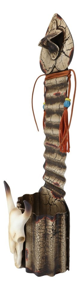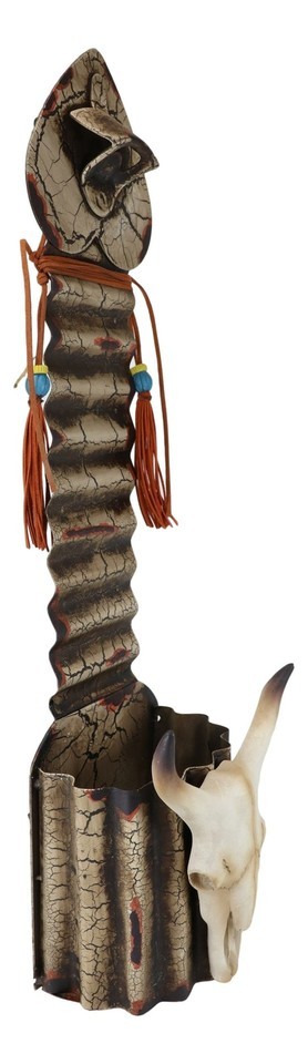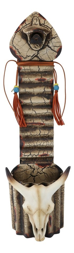 - Rustic Western Beaded Bull Cow Skull Bottle Cap Opener With Bucket Catch 21"H