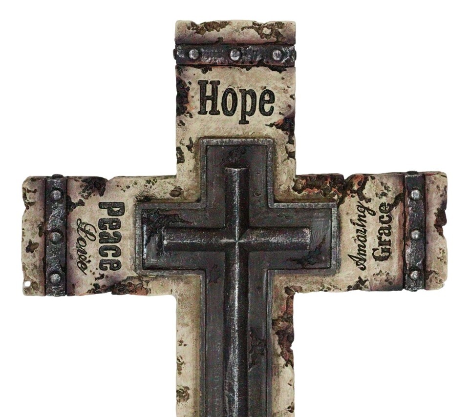 - Rustic Western Christian Love Hope Peace Amazing Grace Bible Verse Wall Cross