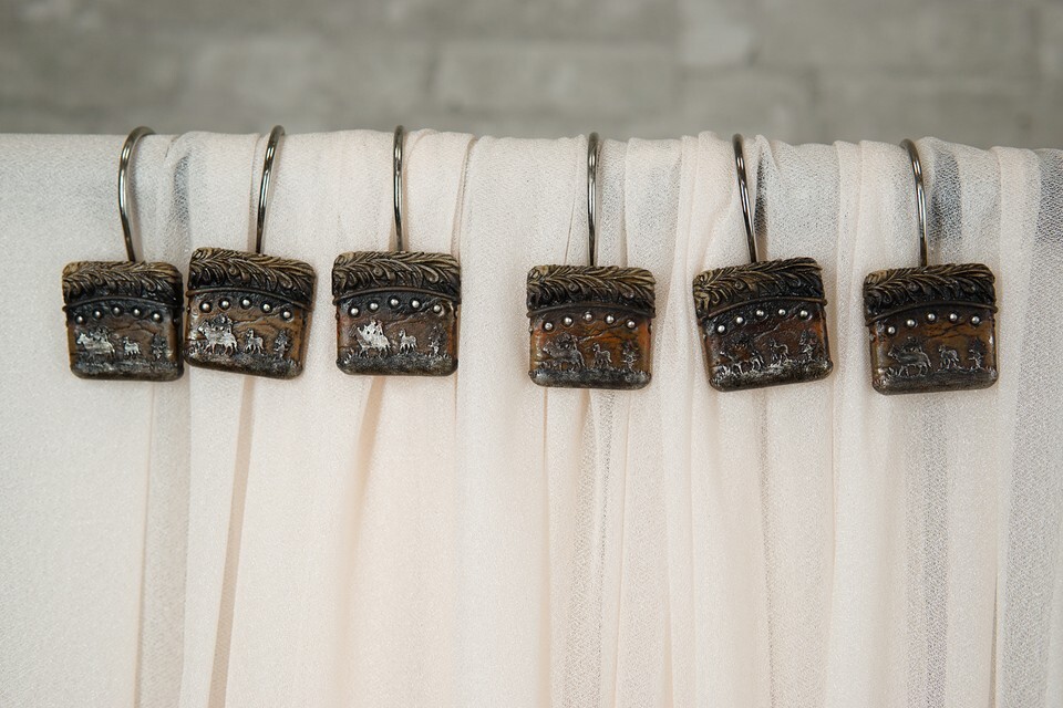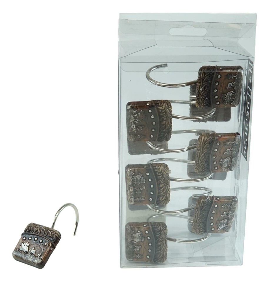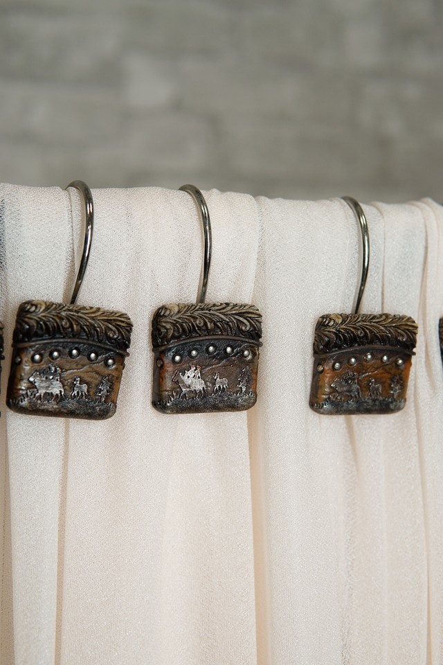 - Rustic Western Cowboys On Horses Faux Leather Bathroom Shower Curtain Hooks 12pk