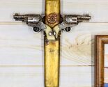 Ebros Rustic Western Dual Handgun Pistols with 12 Gauge Bullet Shell Casing Wall Cross