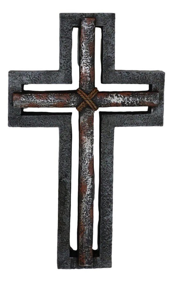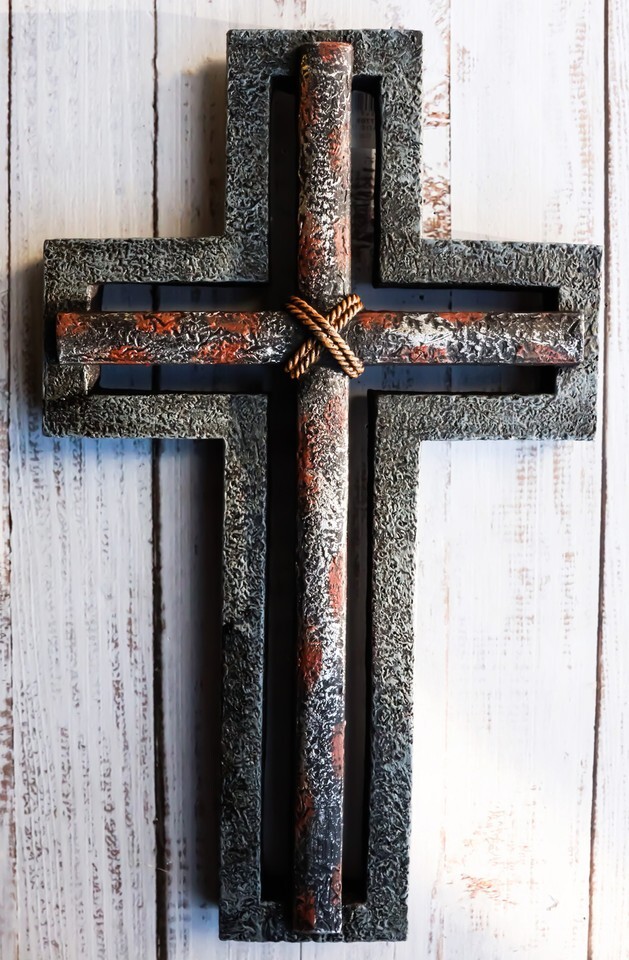 - Rustic Western Layered Rust Finish Crossed Ropes Wall Cross Christian Plaque
