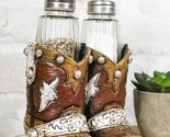 Rustic Western Silver Conchos Cowboy Boots With Spur Salt Pepper Shakers Holder