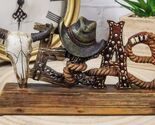 Rustic Western Texas Word Art Cow Skull Cowboy Hat Ropes Horseshoe Desk Plaque