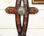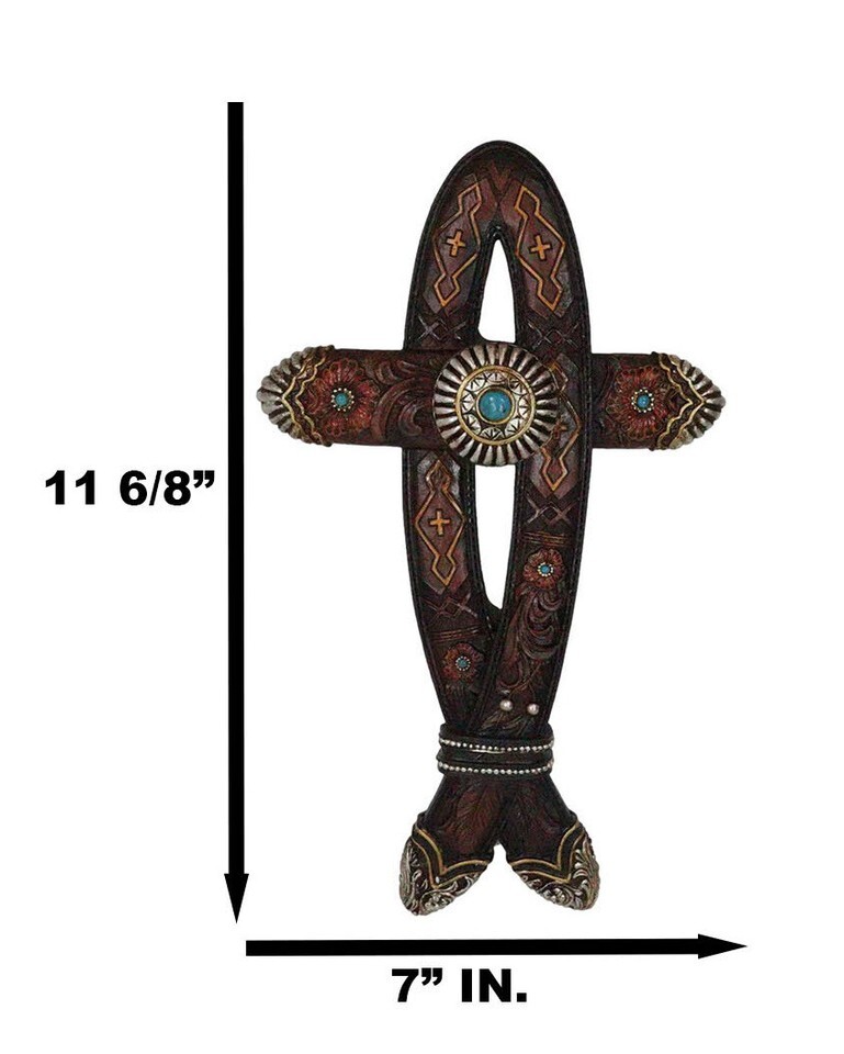 Ebros Rustic Western Turquoise Gem Concho Tooled Leather Belt Ichthys Fish Wall Cross