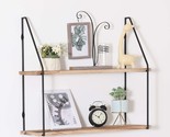 - Rustic Wood Floating Wall Shelf with Metal Brackets - 2-Tier Storage