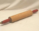 Rustic Wooden Rolling Pin Red Handles Kitchen Utensil Tool Country Farmhouse