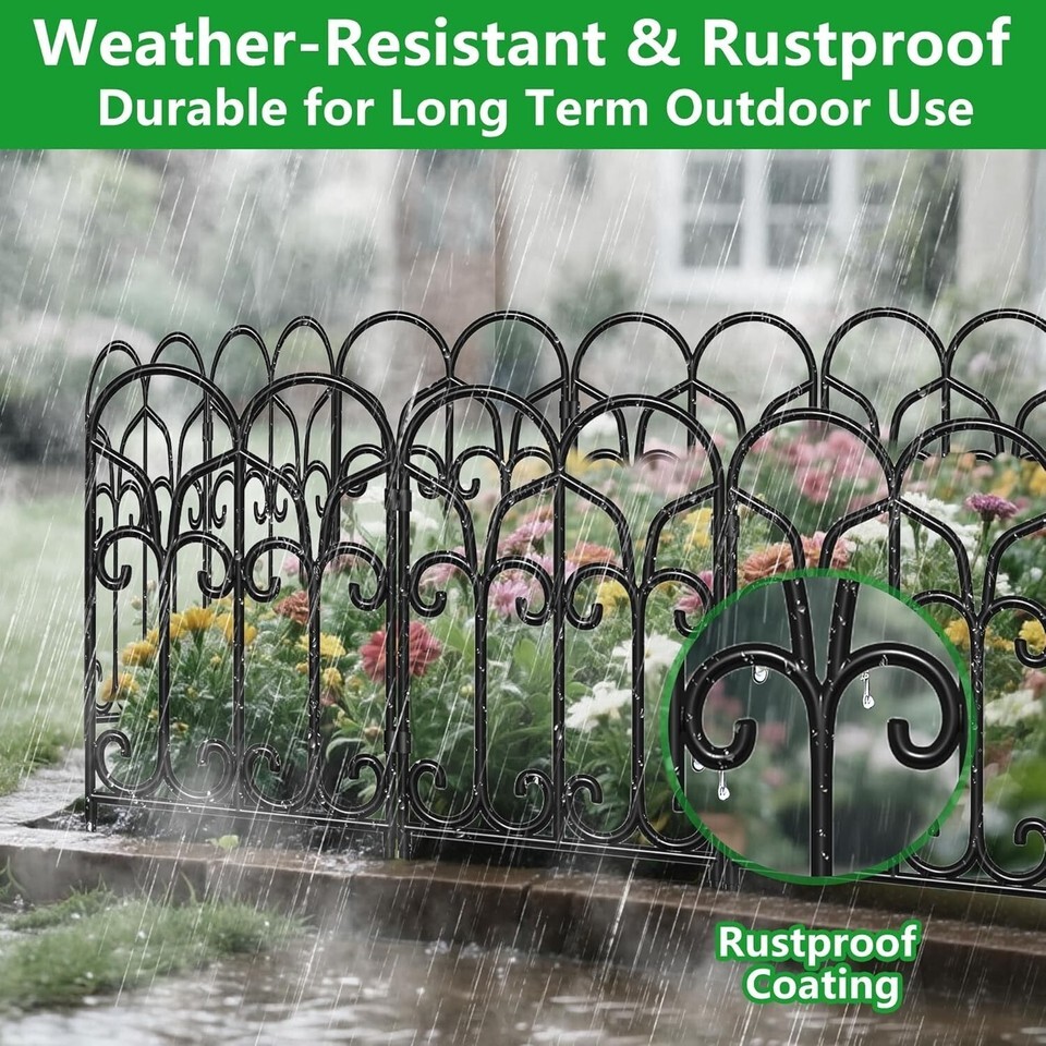 This Rustproof 10ft Garden Fencing is not just a barrier; it is an elegant addition to your outdoor space that enhances your garden's beauty while providing practical functionality. Effortlessly install this sturdy fence to keep your pets safe and your plants flourishing. Don?t settle for flimsy materials that tarnish in the weather - choose our durable decorative garden fence for a long-lasting, refined aesthetic that will serve you well in every season. Invest in quality, elegance, and versatility for your garden today!