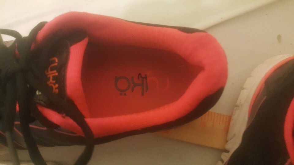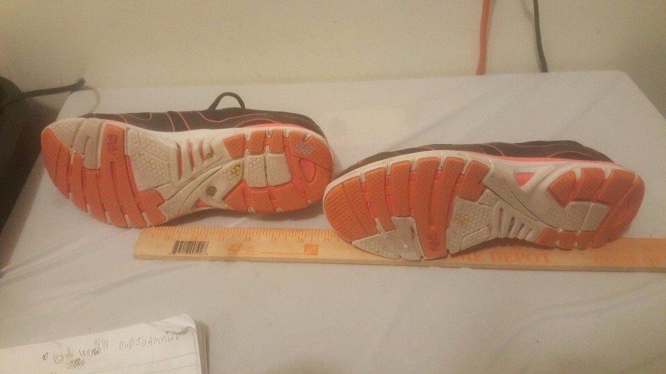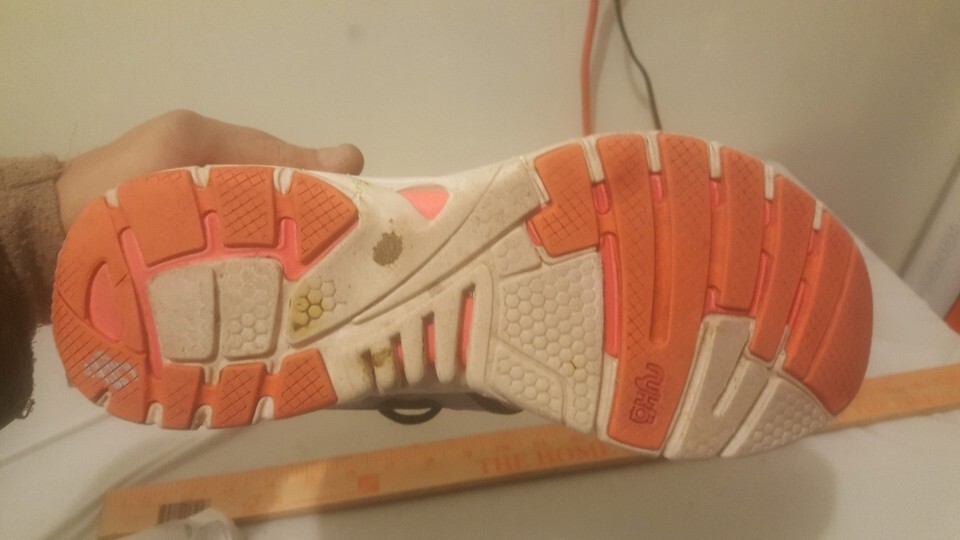this item is pre-owned and show some signs of use there is staining on the outsole along with some wear and the brand name on the insole is coming off