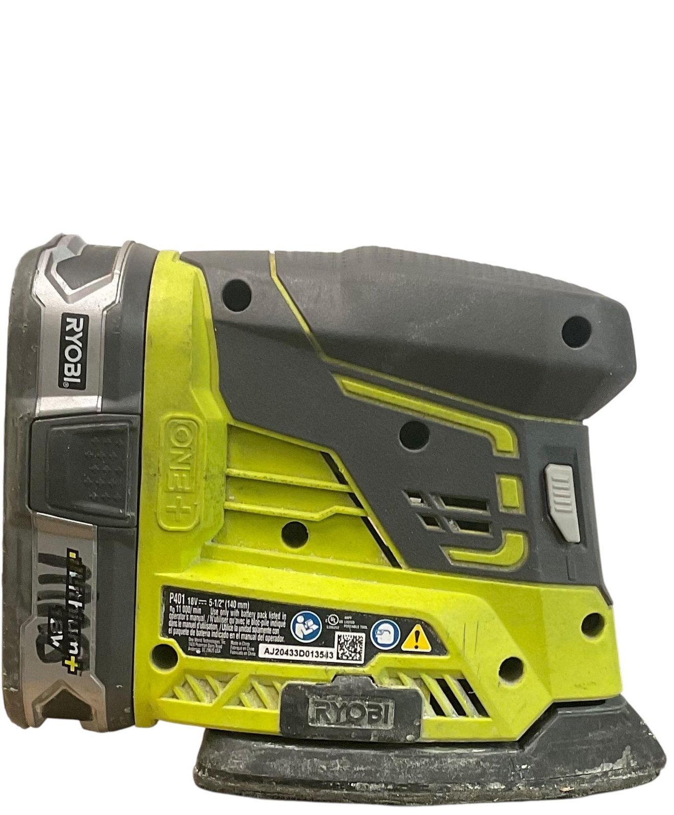 Category: Cordless hand toolsType: Palm sanderBrand: RyobiModel number: P401Size: 5-1/2"Color: Green/GreyPower source: BatteryBattery Included: yesCase included: noCharger Included: noVoltage: 18VNumber of pieces: 2Condition:Used