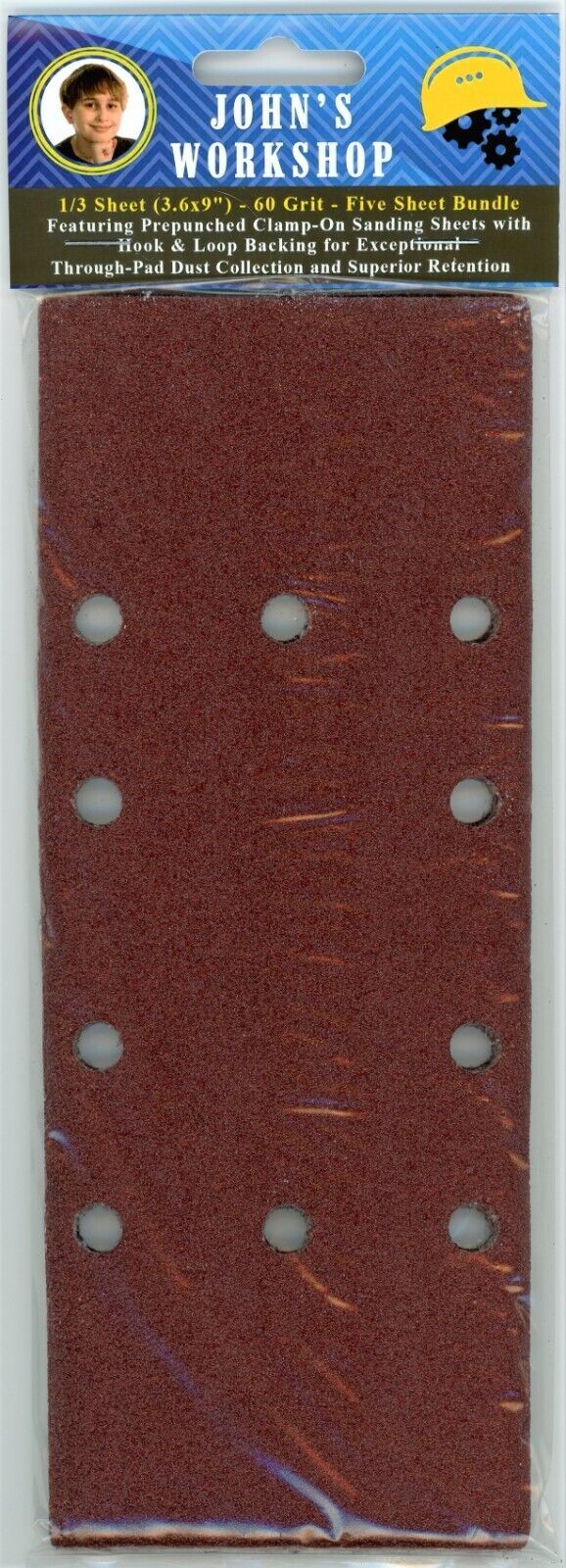 Ryobi S631DK - 1/3 Sheet (3.6x9") - 60 Grit - PrePunched - 5 Sheet Sandpaper Bundle