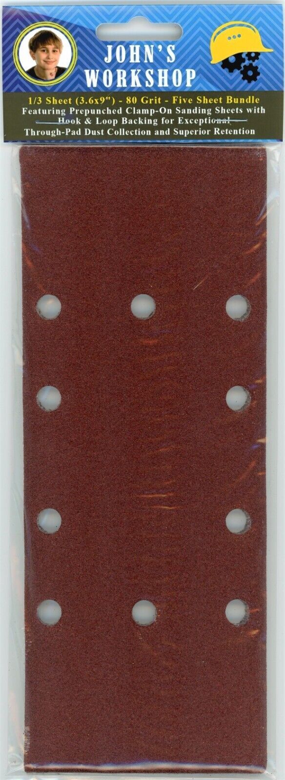 Ryobi S631DK - 1/3 Sheet (3.6x9") - 80 Grit - PrePunched - 5 Sheet Sandpaper Bundle