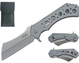Product description: This is the S-TEC TS004 TS004-L Series Cleavers designed to operate in the toughest environment whether you go on a hunt or just simply going camping with your friends. The Cleaver features an all Stainless Steel Frame Lock Design with Ball Bearing Opening System for a smooth and solid feel. The wide width and length of the blade allows the user to easily chop and slice through wood, fruit, and vegetables. This massive folding cleaver mark the first of its kind on the market. The standard size measures in at 10.25" while its bigger brother measure in at the massive 12". All TS004 TS004-L series cleavers are offered with heavy duty belt clip attachment and a nylon carrying pouch.