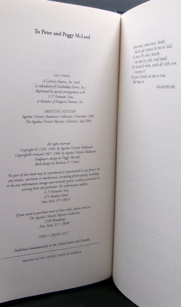 - SAD CYPRESS Agatha Christie Mystery Collection Literary Express 2000 Variant