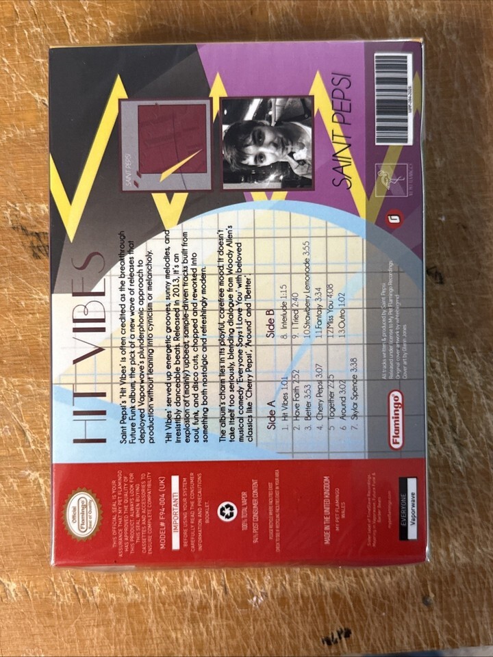 Sealed limited edition N64 cassette tape copy of Hit Vibes by Saint Pepsi. Produced by My Pet Flamingo. Size of a VHS Tape, contains cassette inside.