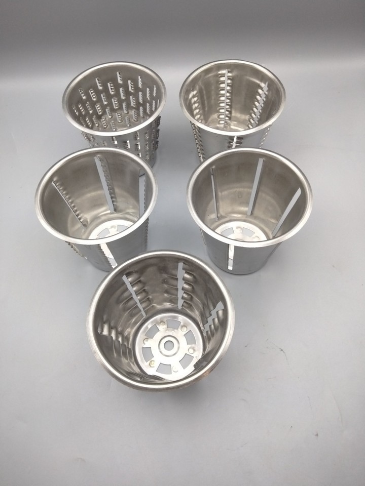 - SALADMASTER Stainless Steel Hand Food Processor w/ 5 Cones. W/O Base.