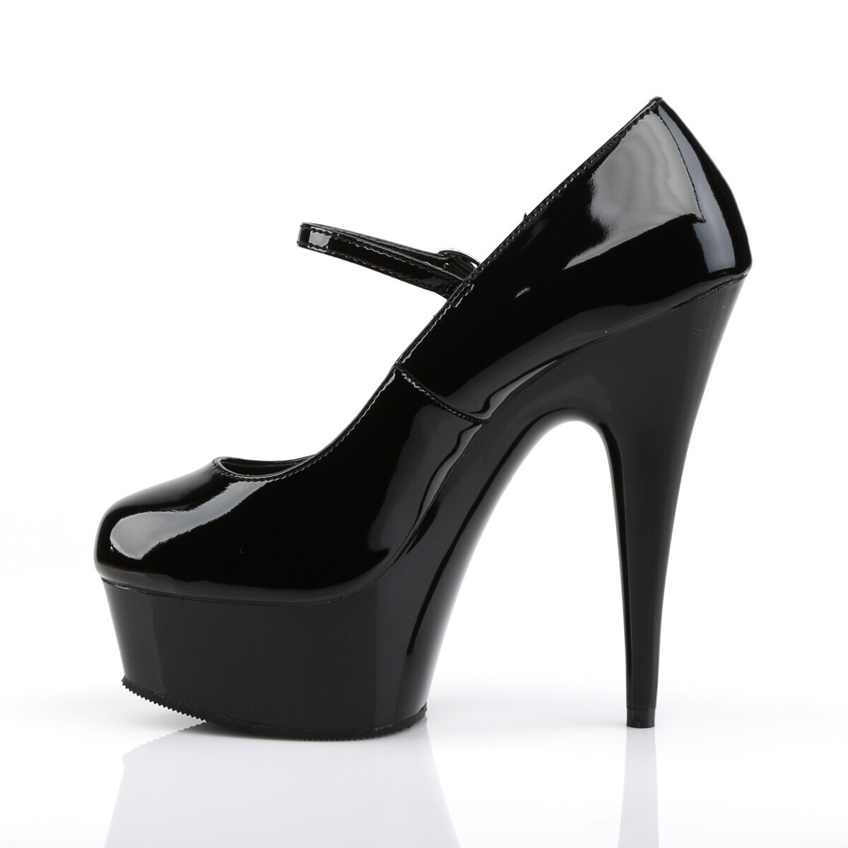 6" High Heel 1 3/4" Platform Black Patent (Shiny) Mary Janes With Adjustable Buckle.