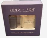 Brand new in box Sand + Fog Vanilla Sandalwood soap gift set. Contains 15.7oz glass pulp bottle and huge 34oz refill bag