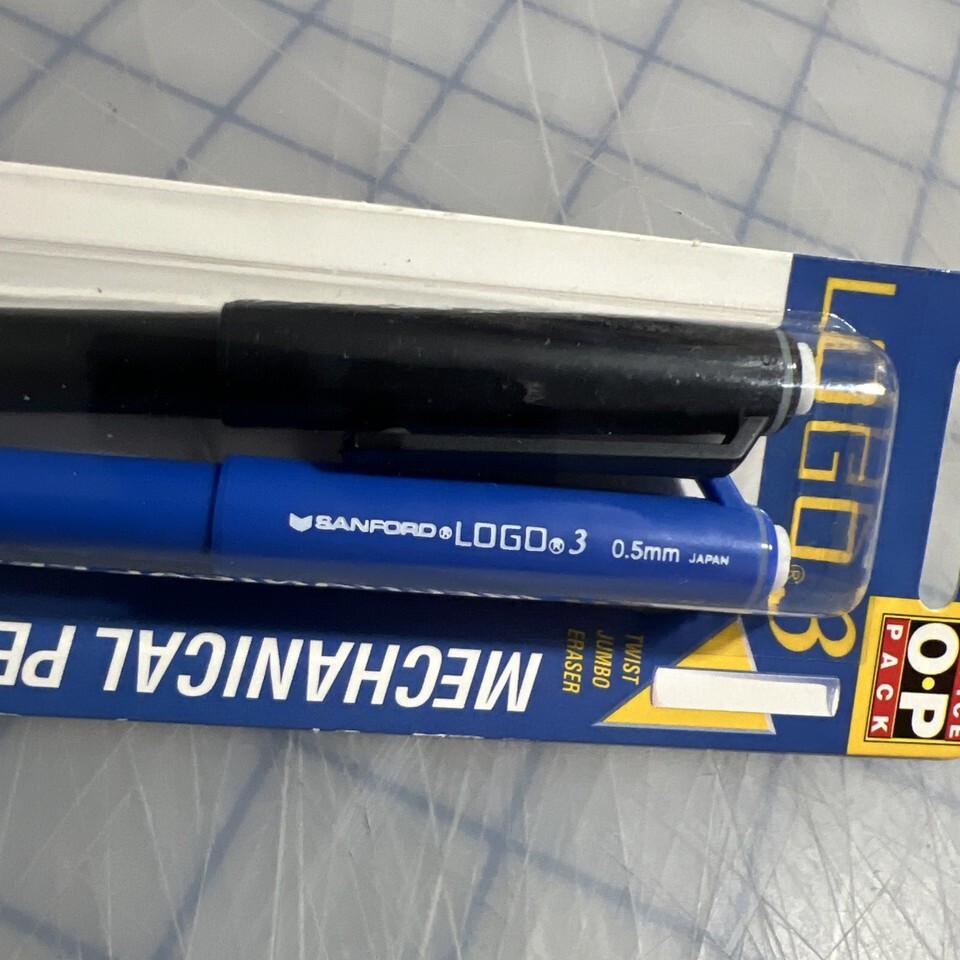 - SANFORD LOGO 3 Mechanical Pencil 0.5 mm Lead Japan Vintage NOS Black Blue
