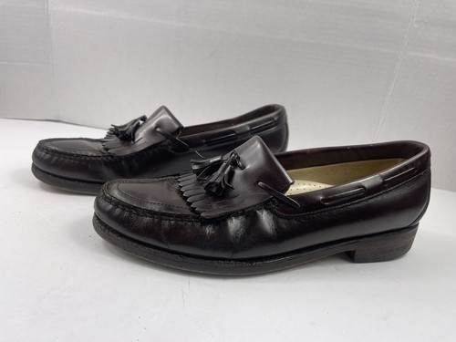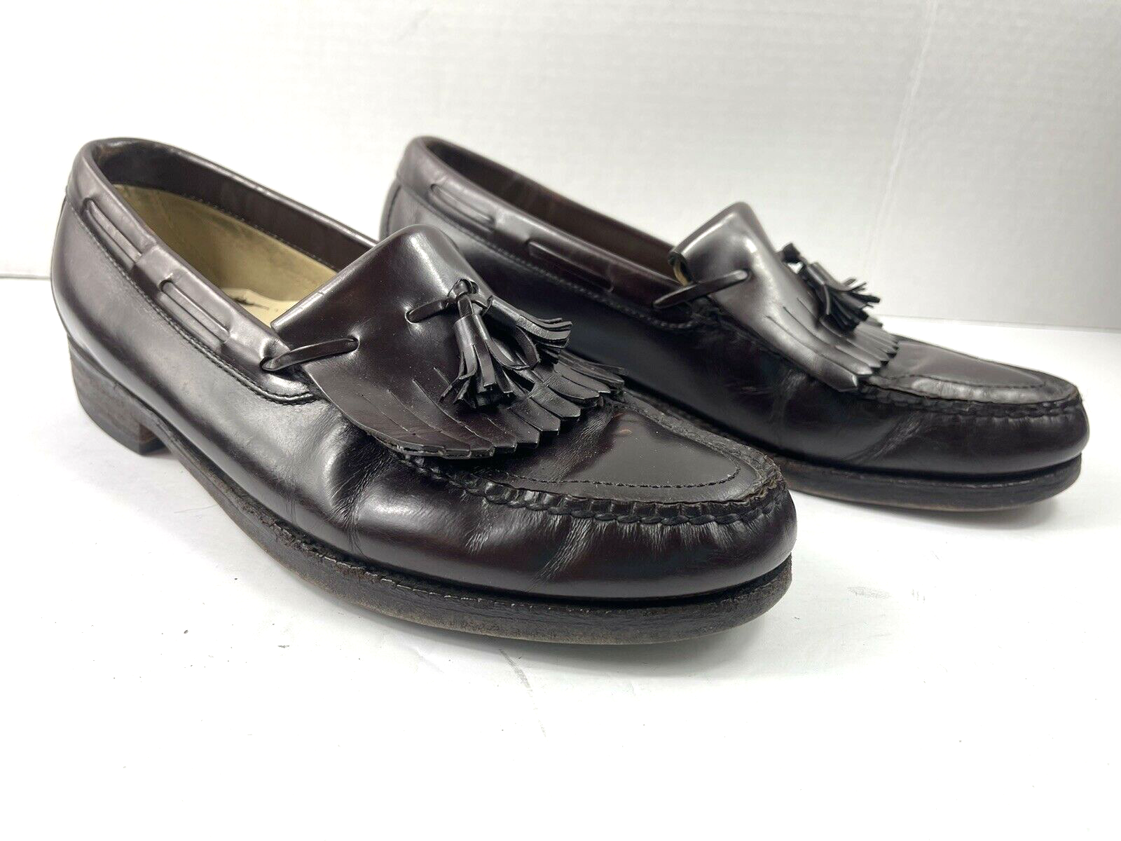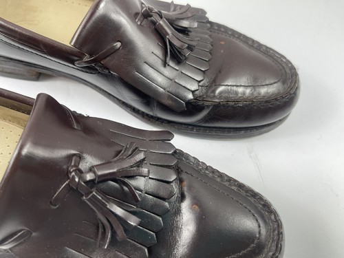 - SAS Loafers Men 8.5 S Slim Narrow Shoe Black Red Leather Kiltie Tassel Hand Sewn