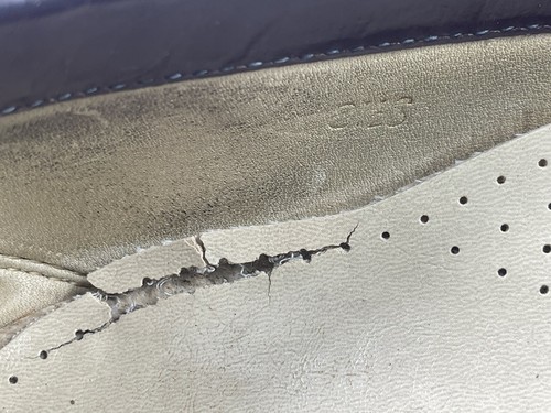 Note : Being a used item, there are signs of prior use on it like a few body abrasions, a little fading, staining, heel wear, some insole/inside body staining/wear and an area of gum on the bottom sole but overall, they are still in really great condition.