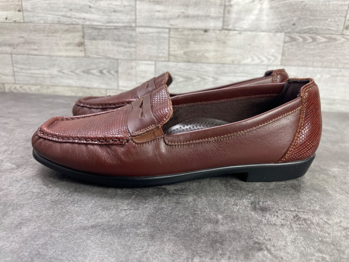 - SAS Penny J Loafers Women 7 Shoes Red Brown Leather Tripad Comfort Lizard Exotic