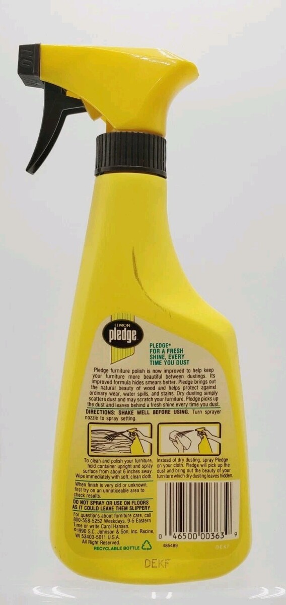 - SC Johnson Lemon Pledge Household Cleaner Vintage Spray Pump Bottle 1990