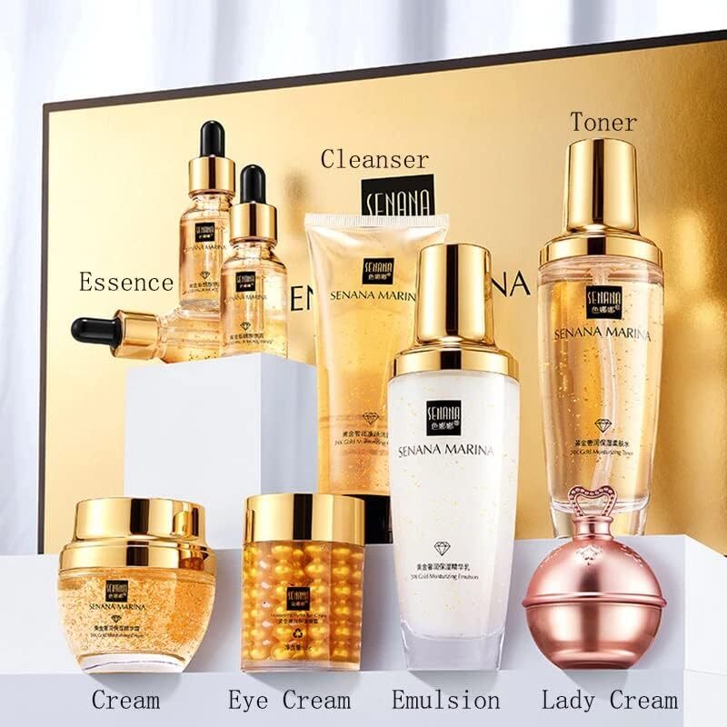 - SENANA 24K Gold Skin Care Set - 9-Piece Collection for Ultimate Moisturizing, Po