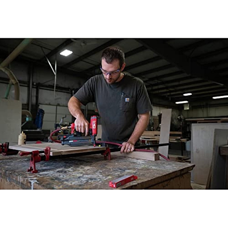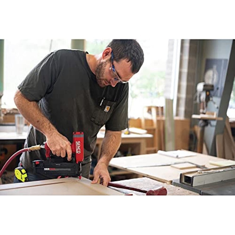 Featuring SENCO?s Neverlube oil-free design, the tool never needs to be lubricated, eliminating stains to the work surface. SENCO?s 2 in. 21 Gauge pinner is capable of shooting 5/8 in. to 2 in. slight head pins. The 21 Gauge offers more holding power than a 23 Gauge tool and leaves a smaller hole than an 18 Gauge brad nailer, creating the perfect middle ground between the two. Reversible belt hook Rear exhaust with muffler Last nail lockout prevents dry-firing Includes: Neverlube 21 Ga 2" Pin Nailer - TN21L1,Wrench,Swivel Air Plug,Case.