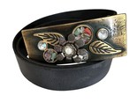 SERENO Italian Black Leather Belt With Metal Buckle Floral Embellished XL