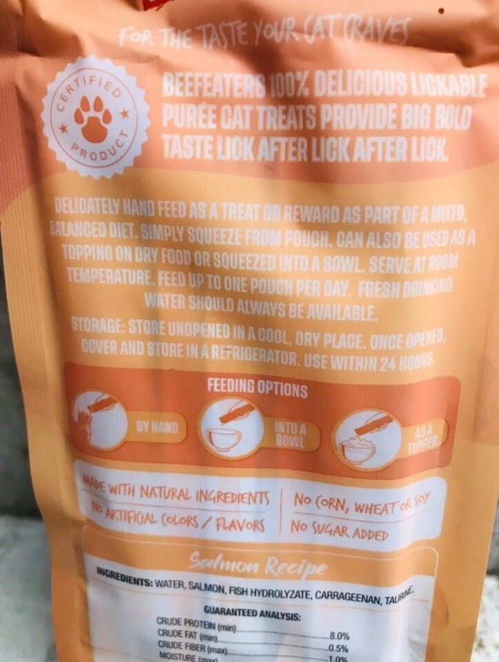 Beefeaters Lickables Salmon Puree Cat Treats 1.59 oz-Brand New-SHIPS N 24 HOURS.