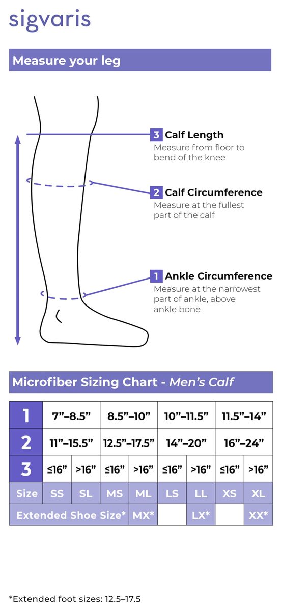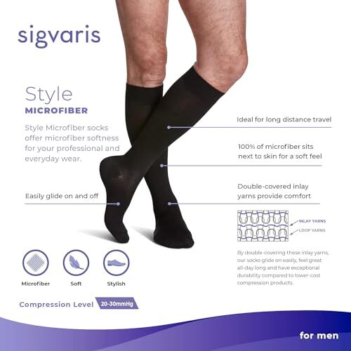 - SIGVARIS Mens Style Microfiber 820 Closed Toe Calf-High Socks 20-30mmHg - Mediu