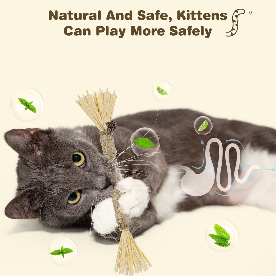 Promotes Dental Health: The sisal rope and raffia used in these cat chew toys are bite resistant and help clean teeth, prevent plaque and tartar buildup, and promote overall dental care for your cat.
