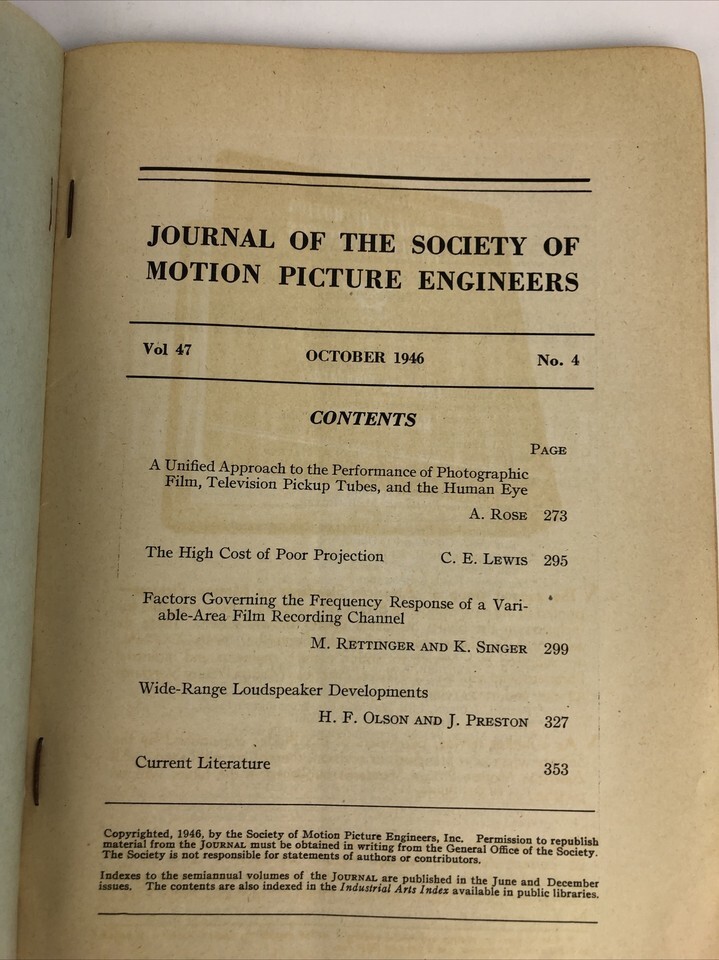 - SMPE Journal Of The Society Of Motion Picture Engineers October 1946 VOL 47 No 4