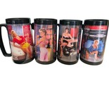 The product is a vintage lot of four Thermo-Serv tool girl plastic mugs featuring Snap-On tools advertising. The mugs are multi-color and were created in 1987 in the United States. Each mug likely showcases a different tool from the Snap-On collection and serves as a unique collectible piece for enthusiasts of vintage advertising or tool memorabilia. Perfect for collectors or those looking to add a unique touch to their kitchen or office space, these mugs offer a glimpse into the past and the popular brands of the 1980s.