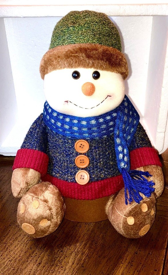 - SNOWMAN Gift box Plush jingle Bell on Hat approx 13" tall CHRISTMAS