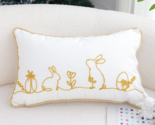 Add a touch of spring elegance to your home with this bundle of 2 charming pillow covers (pillow inserts not included). Featuring minimalist golden embroidery of bunnies, flowers, gifts, and Easter eggs on crisp white fabric, these pillowcases are perfect for Easter decorating, kids' rooms, or adding a seasonal accent to your sofa or bed. Finished with a classic gold rope trim, they bring a refined yet playful touch to your spring decor.