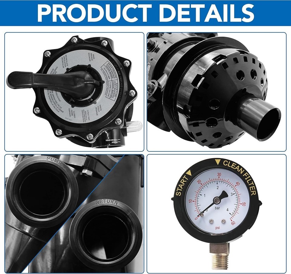 4.Effective Filter Protection and Performance Maintenance: By facilitating the backwash function,preventing clogging caused by accumulated dirt and debris.This not only maintains the filter?s optimal filtration efficiency but also extends the lifespan of both the filter and the pool pump, reducing the frequency of filter replacements and ensuring consistent water quality in the pool.