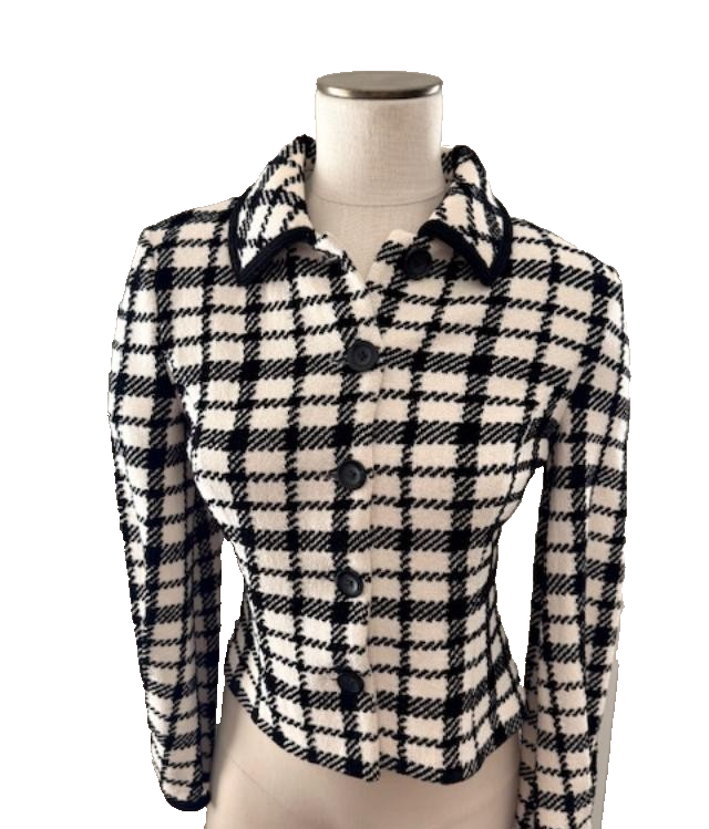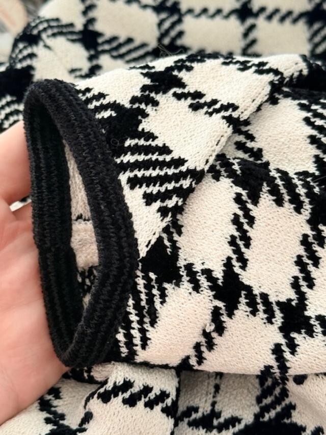 - ST. JOHN sweater knit jacket cardigan houndstooth button-up black ivory